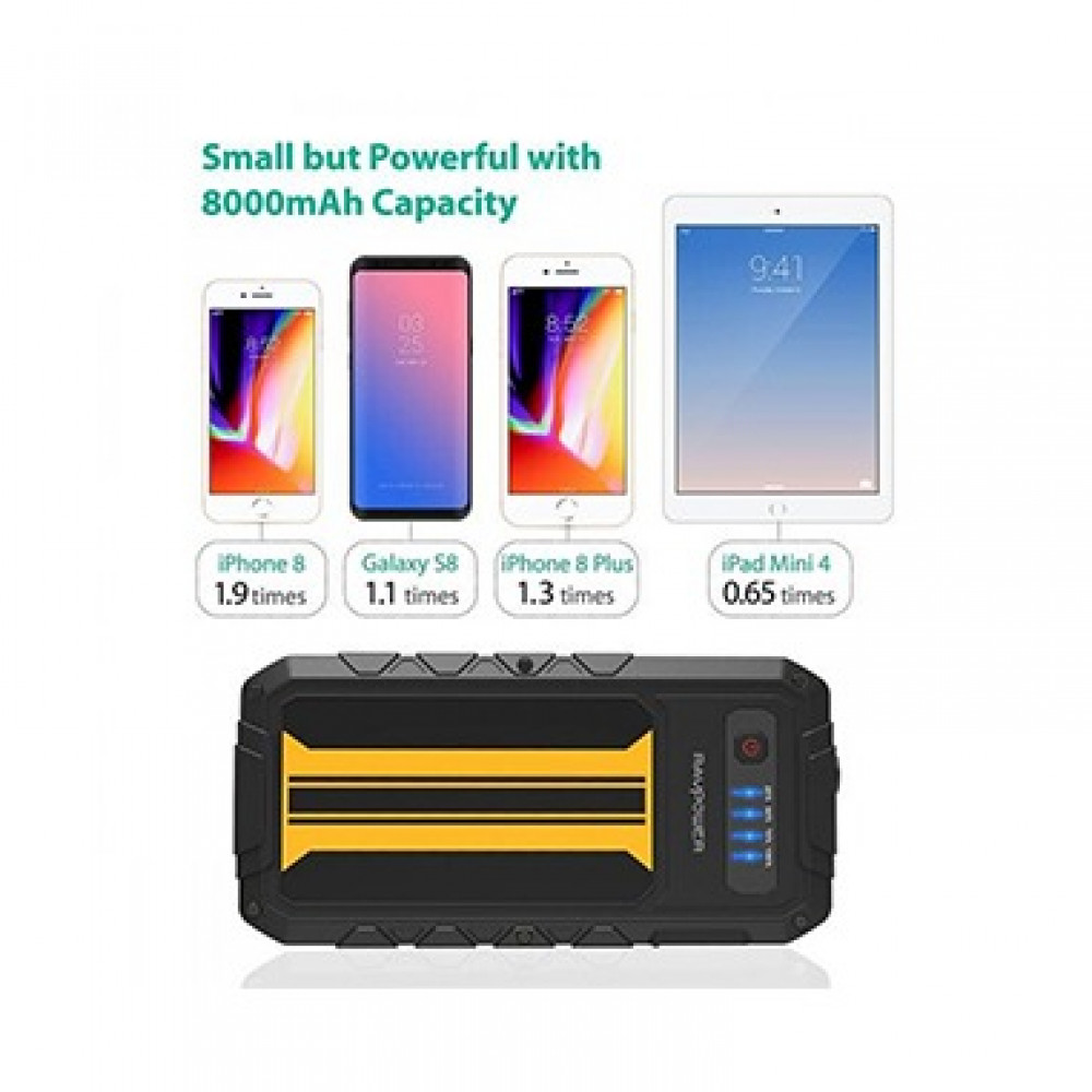 • Car starter (subscription) works up to 20 times on 12-volt car batteries.